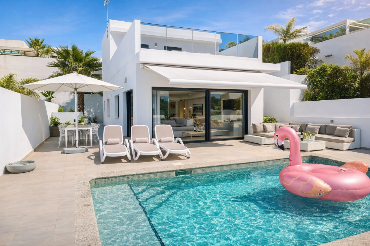 Stap binnen in jouw eigen mediterrane oase in La Marina. Deze villa combineert moderne architectuur comfort en privacy met een zonnige buitenruimte en privé zwembad. • Privé zwembad met ligbedden parasol en lounge • Riante terrassen voor zon én schaduw • Volledig uitgeruste keuken om samen te koken • Moderne slaapkamers met comfortabele boxsprings • Airconditioning in alle ruimtes • Hoge snelheid Wifi ideaal voor planning of relaxen Het hele hu...